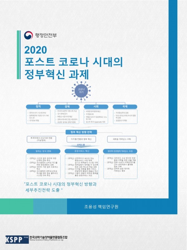 2020 포스트(post) 코로나 시대의 정부혁신 과제 연구 관련링크 페이지 정보 작성일20-08-10 15:57 조회5,352회 본문 포스트 코로나 시대의 행정환경 및 정부역할 변화 전망과 관련 변화를 선도하기 위한 중앙정부의 혁신전략 및 과제 도출 이전글 다음글 목록